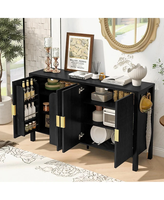 Streamdale Furniture 4-Door Large Storage Sideboard Buffet Cabinet with Glass Doors (Black