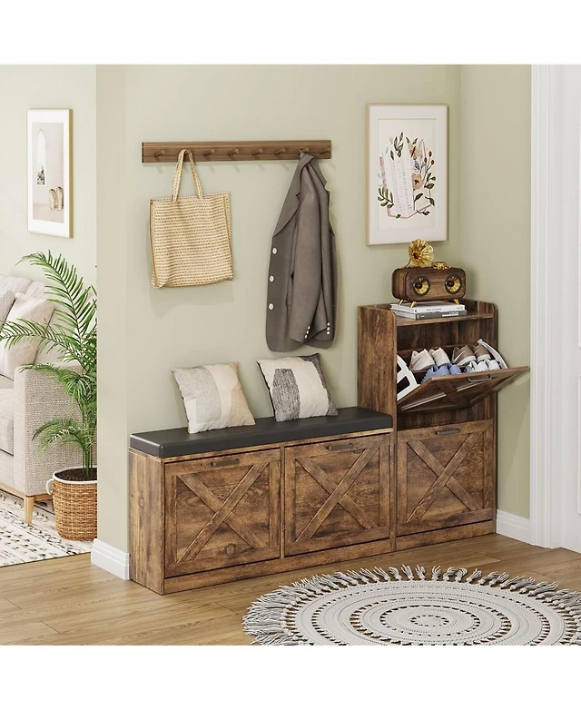 gaomon Shoe Storage Organizer with 2 Flip Drawers, Rustic Brown Farmhouse Cabinet for Entryway, Foyer, or Hallway