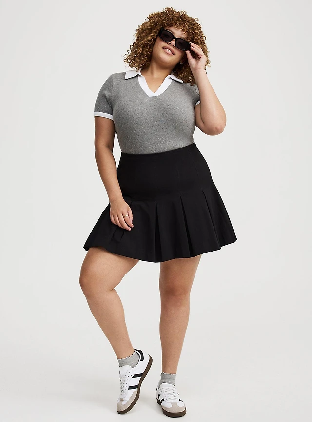 Full Circle Trends Trendy Plus Button-Front Shirt & Pleated Skirt