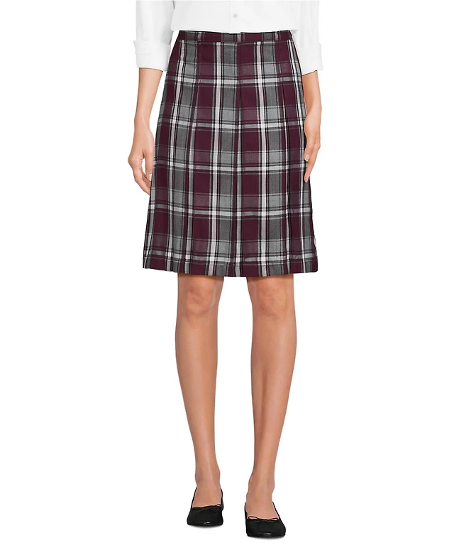 Khaki & Blue Plaid Pleated Chain Skirt