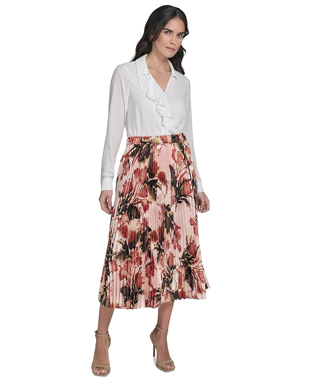 Calvin Klein Women's Pleated Floral Midi Skirt