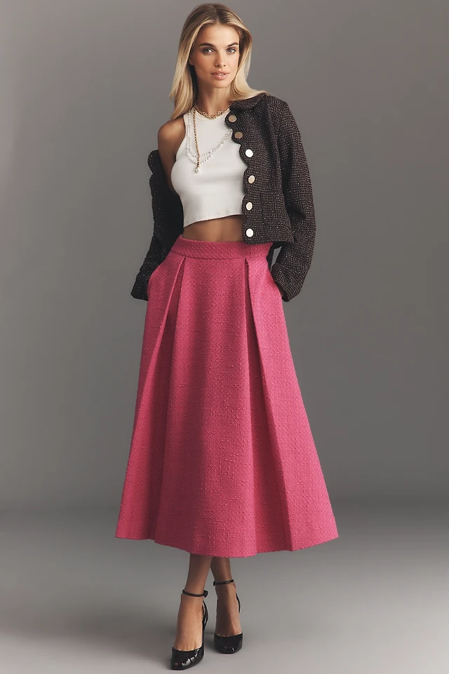 Maeve Bow-Front Pleated Knee-Length Skirt