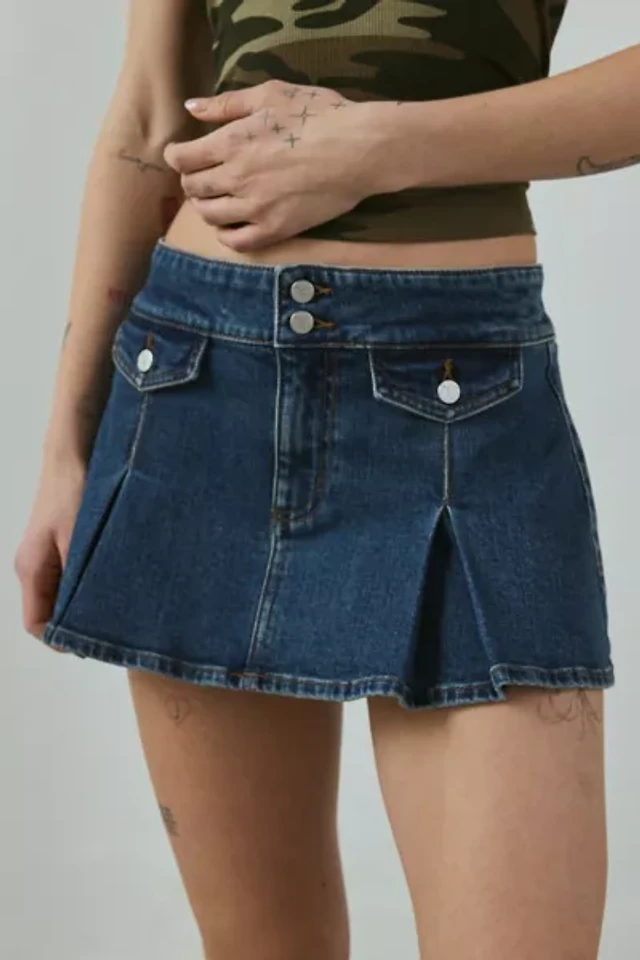 Abrand 00 Jenna Pleated Low-Rise Denim Micro Mini Skirt