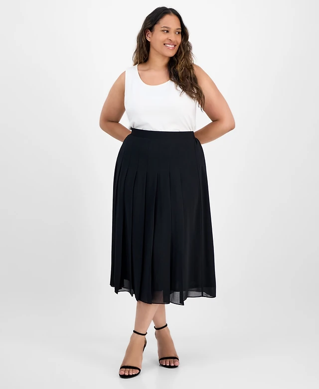 Anne Klein Plus Pull-On Pleated Sequin Midi Skirt