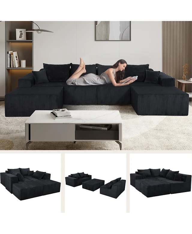 Streamdale Corduroy Cloud Sofa with Footrests & Cushions
