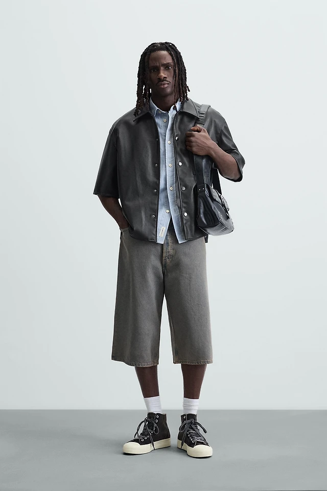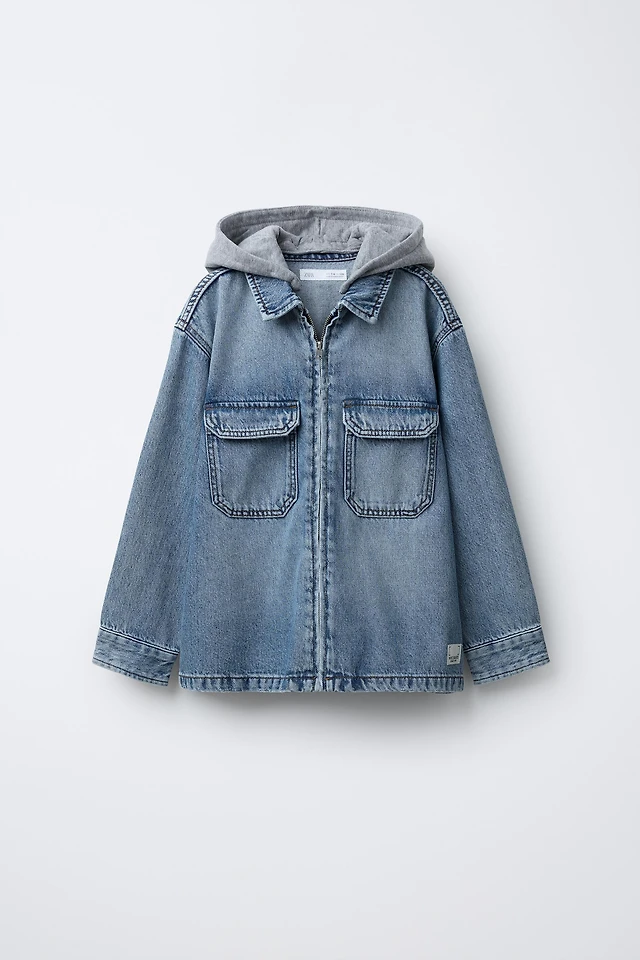 DETACHABLE FLEECE HOOD DENIM OVERSHIRT