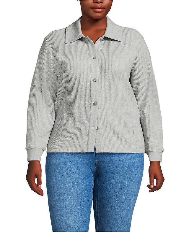 Lands' End Women's Plus Long Sleeve Waffle Collared Shacket