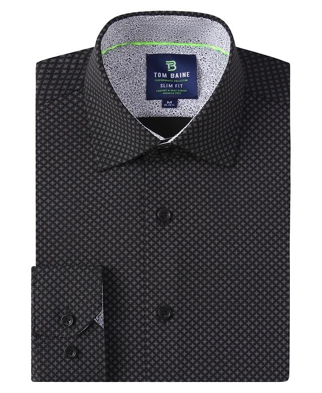 Men's Slim Fit Performance Long Sleeve Geometric Dress Shirt