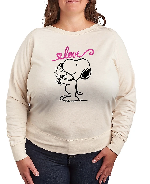 Hybrid Apparel Women's Peanuts Snoopy And Woodstock Love French Terry Long sleeve T-shirt