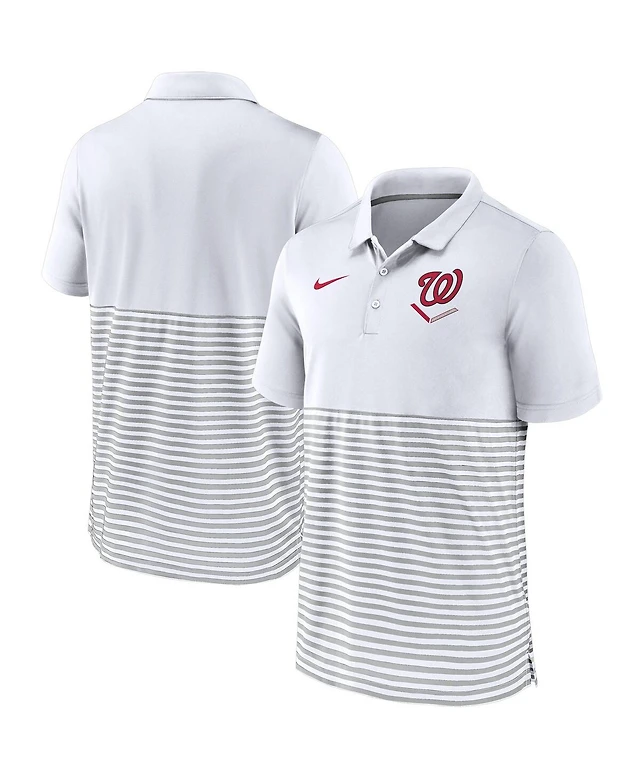 Nike Men's White/Gray Washington Nationals Home Plate Striped Polo Shirt