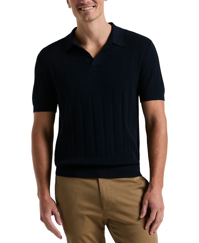 Scott Barber Men's Cotton/Lyocell Stripe Polo, Blue