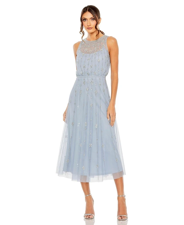 Mac Duggal Women's Sequined Wrap Over Cap Sleeve Ruffle Hem Dress