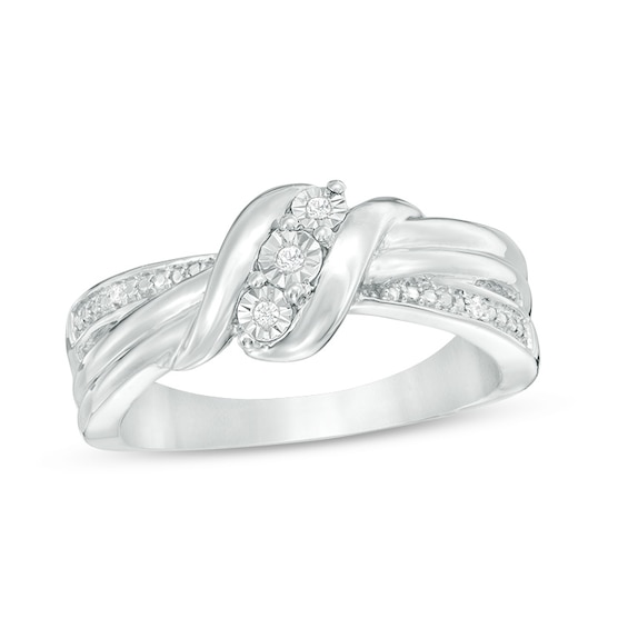 Diamond Accent Three Stone Wave Ring in Sterling Silver