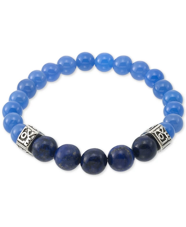 Legacy for Men by Simone I. Smith Dyed Black Lapis Lazuli (10mm) & Blue Agate (8mm) Men's Stretch Bracelet in Stainless Steel