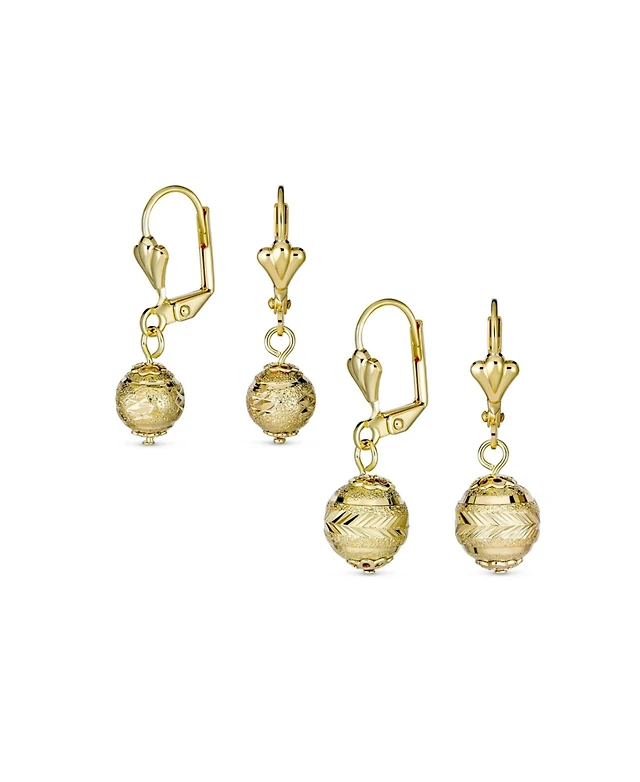Bling Jewelry Set of 2 Drop Ball Earrings in Gold Plated Brass - 6MM & 10MM