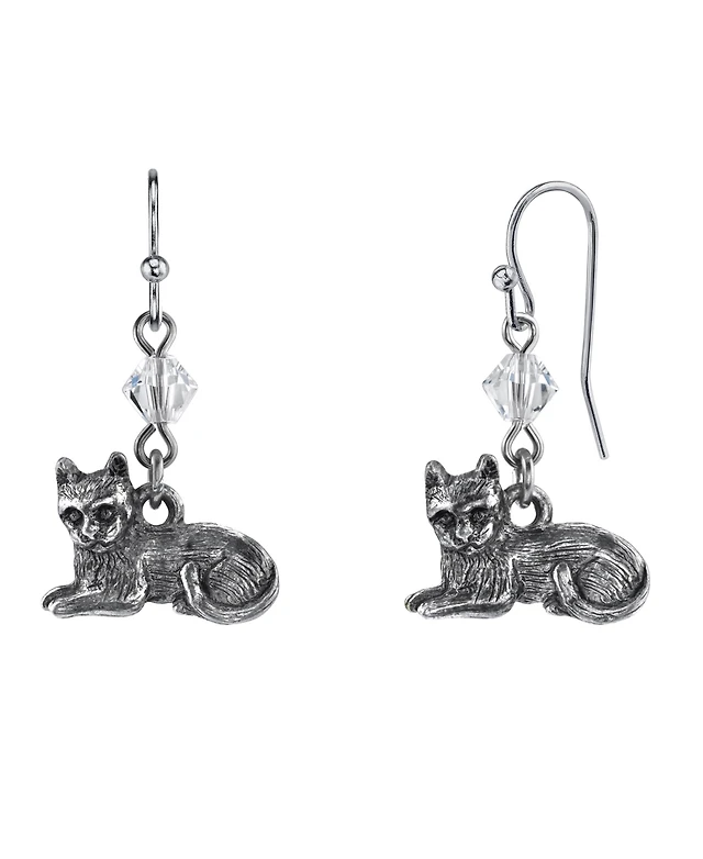 2028 Pewter Cat Wire Earrings