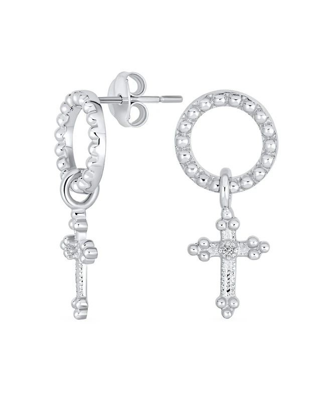 2028 Silver-Tone White Graduated Imitation Pearl and Crystal Drop Earrings