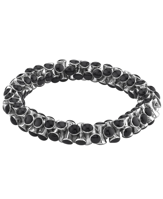 Rhona Sutton Black Tigers Eye Weaved Leather Stainless Steel Bracelet