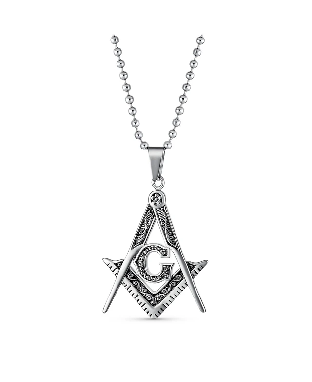 Bling Jewelry Large Freemason Secret Society Square Compass Masonic Symbol Pendant Necklace Stainless Steel With Bead Chain