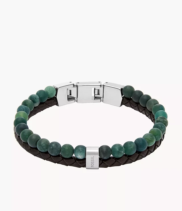 Metallo Stainless Steel Genuine Bead Leather Bracelet
