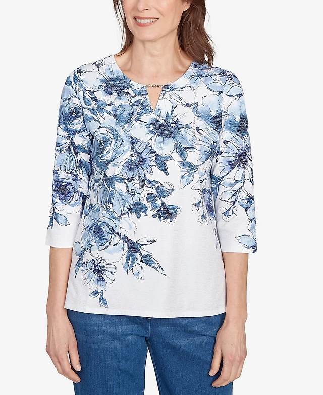 Edikted Women's Steffy Beaded Flower Ribbed Top