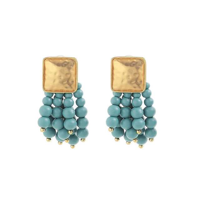 Sohi Women's Blue Beaded Cluster Drop Earrings