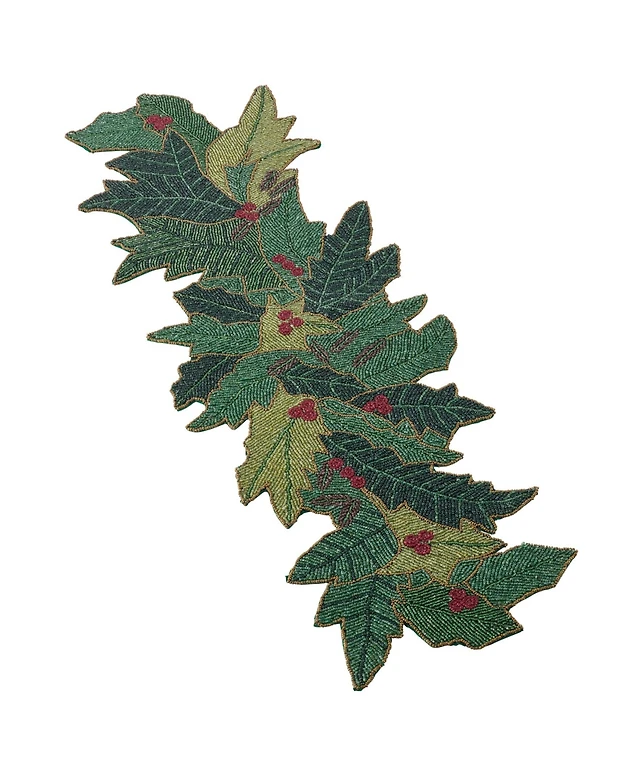 Saro Lifestyle Christmas Beaded Holly Design Table Runner
