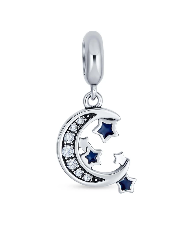 Bling Jewelry Crescent Moon Star Dangle Charm Bead Sterling Silver Bracelet