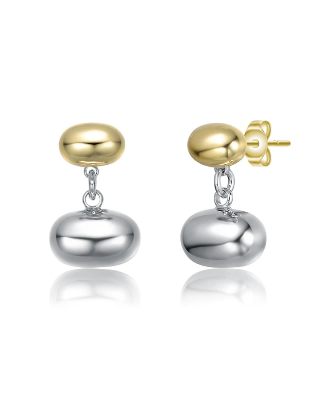 Tri-Color Beaded Chain Drop Earrings in 10k Gold, White Gold & Rose Gold