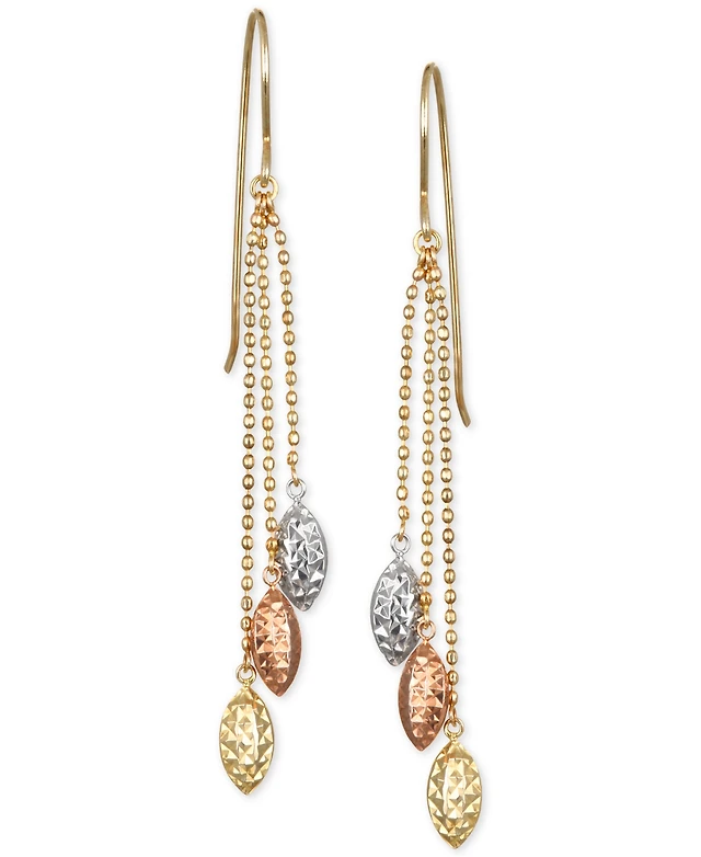 Bling Jewelry Geometric Minimalist Elegance Long Thin Chain Simple Four Bead Ball Threader Earrings .925 Sterling Silver