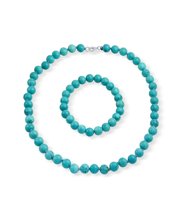 Bling Jewelry Blue Faceted Synthetic Stabilized Turquoise Round Gem Stone 10MM Bead Strand Necklace Silver Plated Clasp