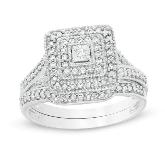 Previously Owned - 1/10 CT. T.w. Diamond Rectangular Cluster Bridal Set in Sterling Silver