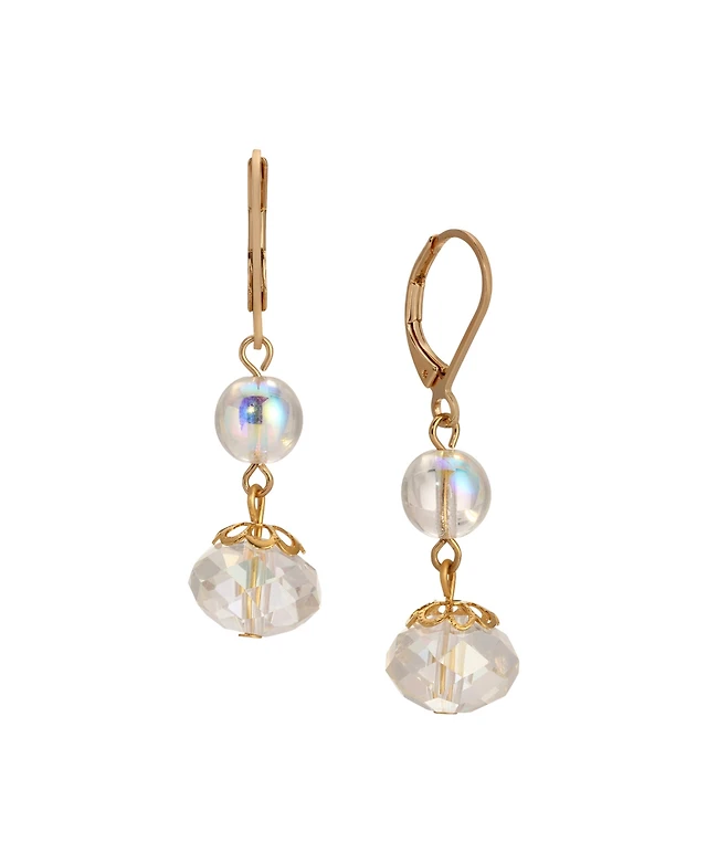 2028 Gold Tone Peach Imitation Pearl Drop Stretch Bracelet