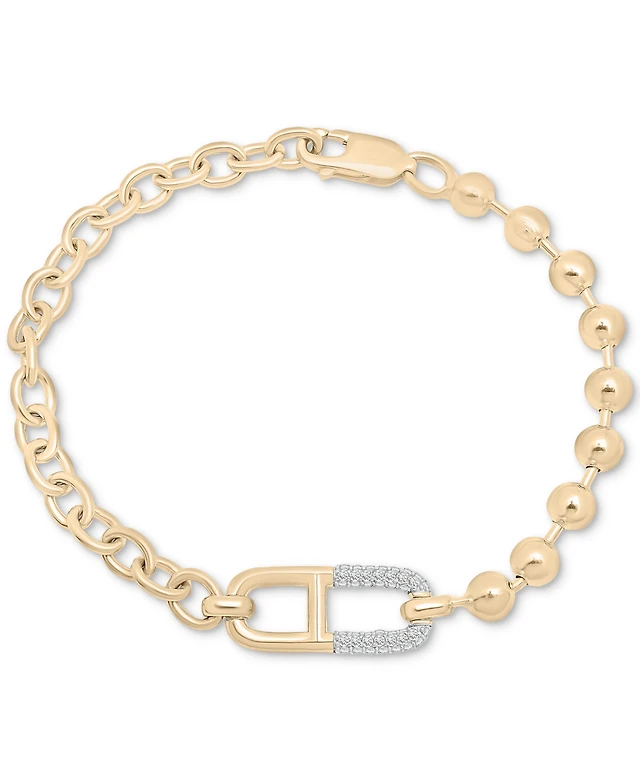 Lab-Grown White Sapphire (4/5 ct. t.w.) & Black Enamel Paperclip Link 18" Pendant Necklace in Sterling Silver & Yellow-Plated Sterling Silver