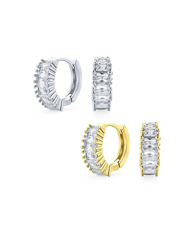 Bling Jewelry Set of 2 Cz Hoop Huggie Earrings with Milgrain Edge in Silver Gold Plated