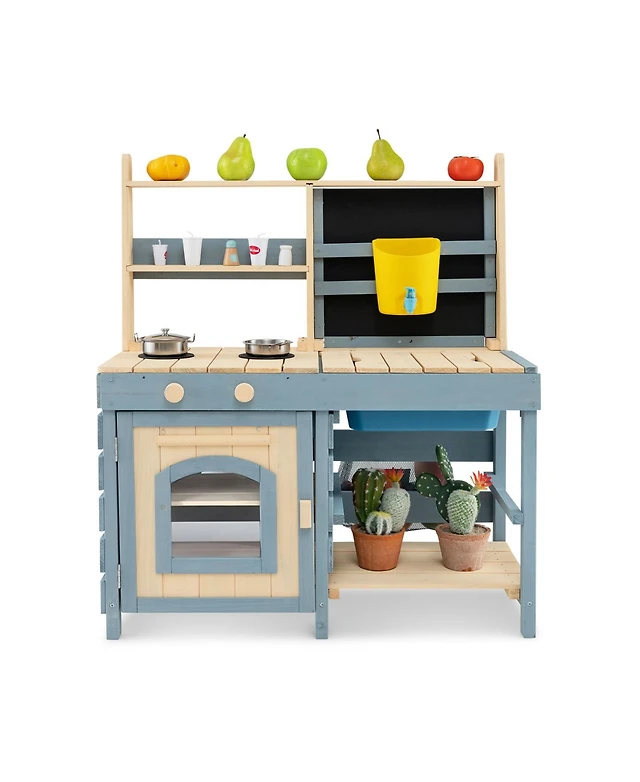 Slickblue Kids Kitchen Set Pretend Play Kitchen with Stoves Faucet Sink Telephone Microwave and Oven