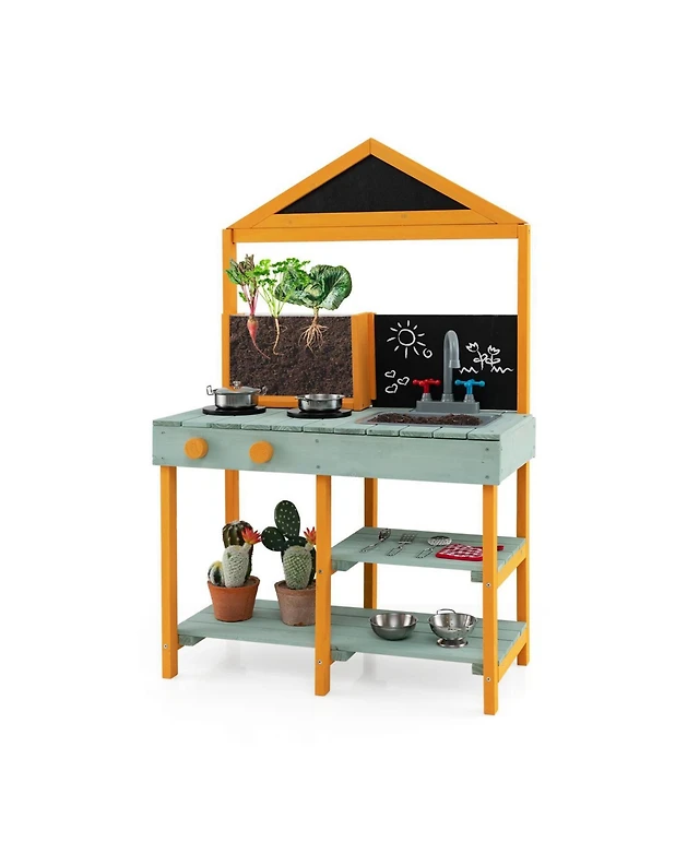 Kids Corner Wooden Play Kitchen with Range Hood and Stoves