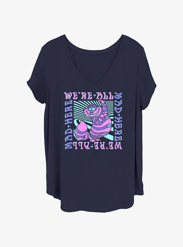 Disney Alice In Wonderland Cheshire We're All Mad Here Girls T-Shirt Plus Size