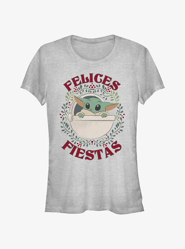 Star Wars The Mandalorian Grogu Wreath Happy Holidays In Spanish Girls T-Shirt