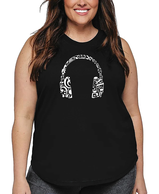 La Pop Art Plus Music Note Headphones Word Tank Top