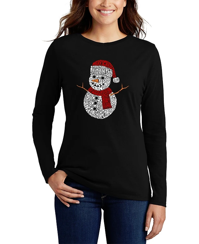 La Pop Art Women's Snowman Face Word V-Neck T-Shirt