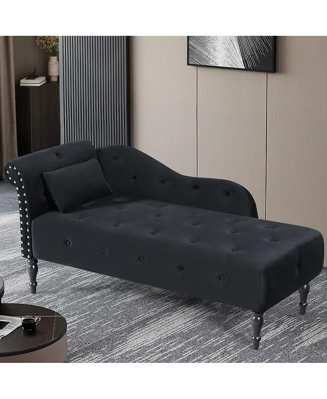 60 Inch Velvet Tufted Chaise Lounge with Nailhead Trim Solid Wood Legs and Pillow for Living Room Bedroom Reading or Relaxing-The Pop Home