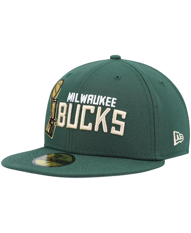 Men's New Era Hunter Green Milwaukee Bucks Champs Trophy 59Fifty Fitted Hat