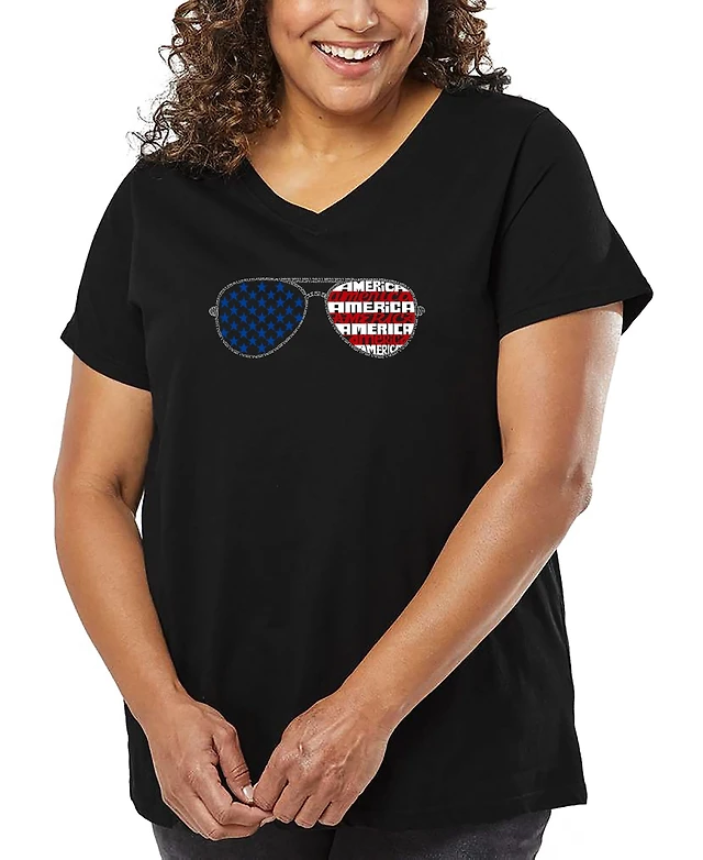 La Pop Art Plus Americana Sunglasses Word V-Neck T-Shirt