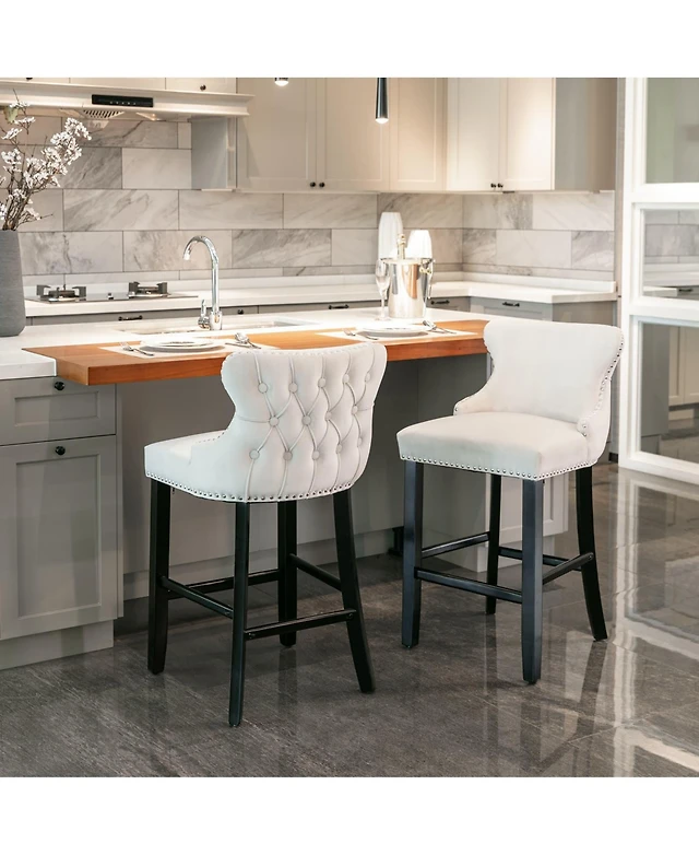 Set of 2 Velvet Counter Height Stools, 26.7" Upholstered Wingback Chairs with Button Tufted Backrest for Kitchen Island-The Pop Home