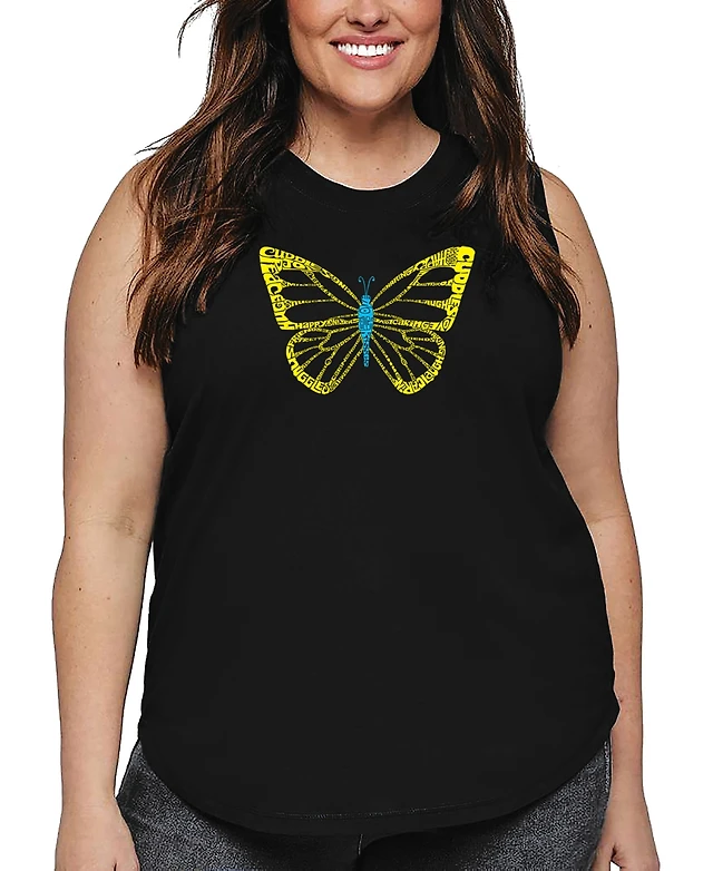 La Pop Art Plus Butterfly Word Tank Top