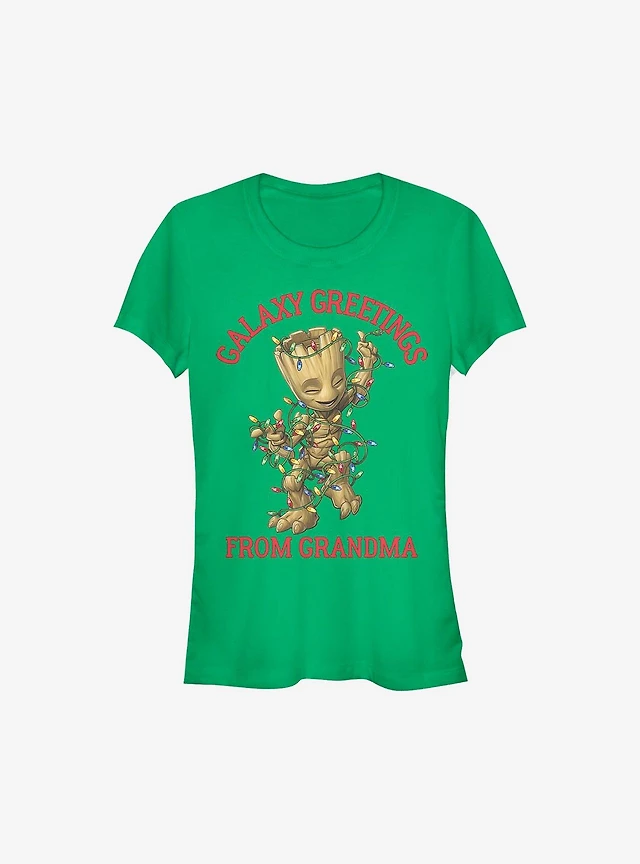 Marvel Guardians Of The Galaxy Christmas Groot Greetings From Grandma Girls T-Shirt