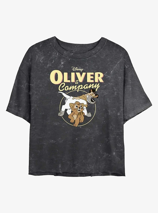 Disney Oliver & Company Oliver and Dodger Girls Mineral Wash Crop T-Shirt