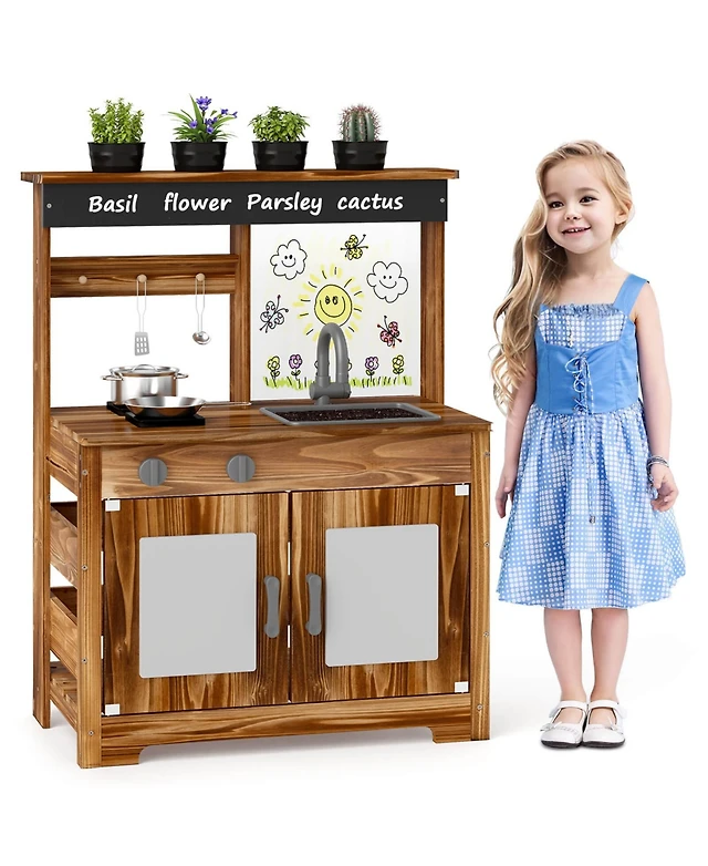 Wood Wagon Flower Planter Pot Stand W/Wheels Home Garden Outdoor Decor