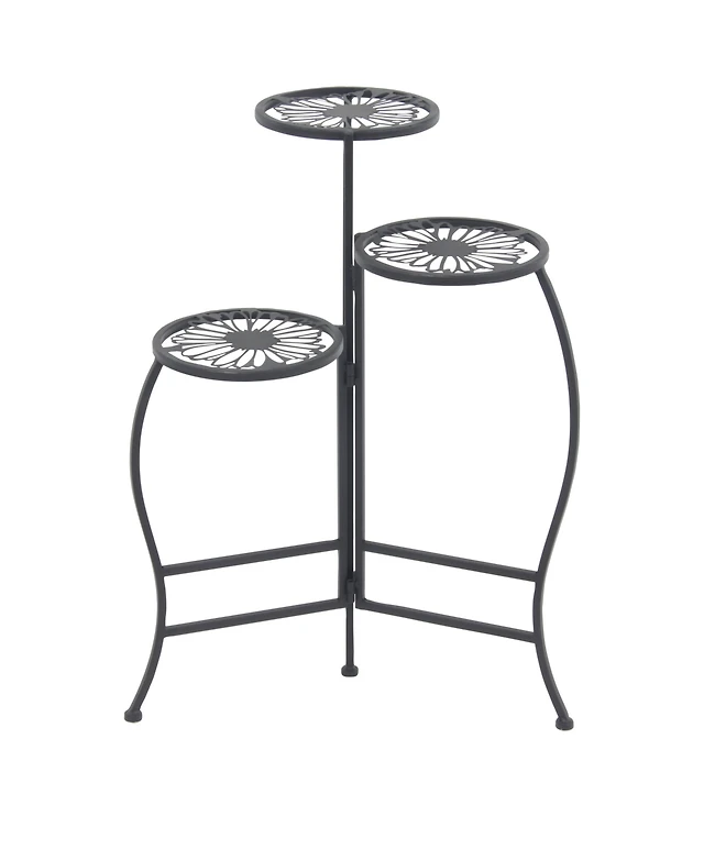 Indoor/Outdoor Steel Decorative Checker Top 3-Tiered Flower Plant Stand Display - Bronze - 2pk